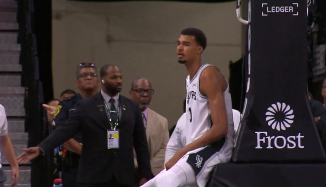 第一节马刺34-30领先4分,文班亚马开场迎着努尔基奇命中打板三分,之后突破上篮得分,首节最后40多秒,马刺新科榜眼哈珀与文班亚马完成不可思议的连线——文班刚过半场就示意哈珀空接,最终文班完成炸裂的暴扣2+1,马刺主场沸腾,但老乐福沦为背景板。