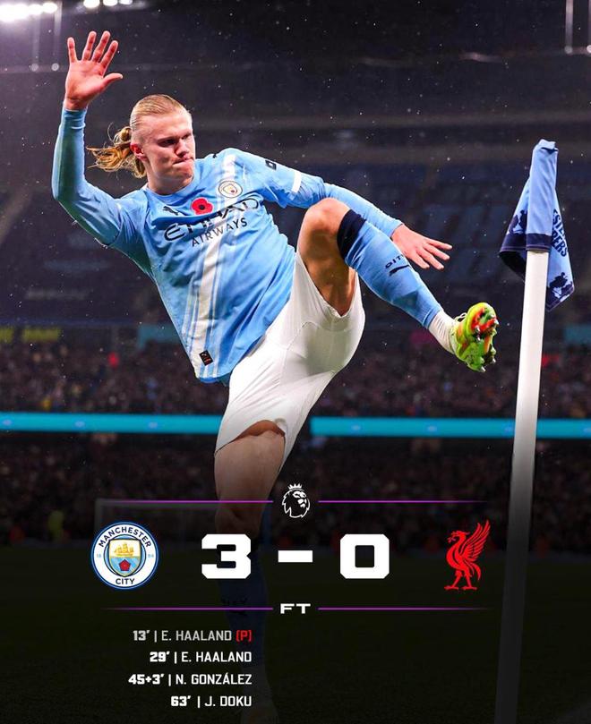 英超-哈兰德头球破门多库世界波 曼城3-0利物浦